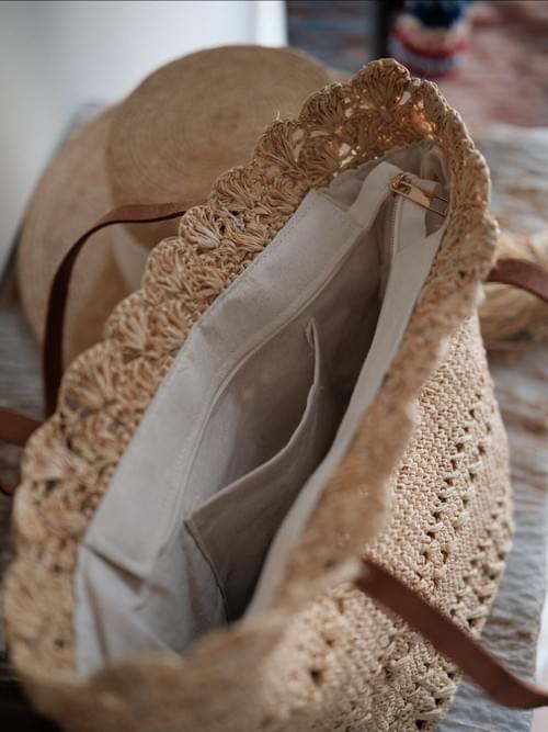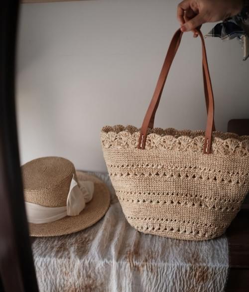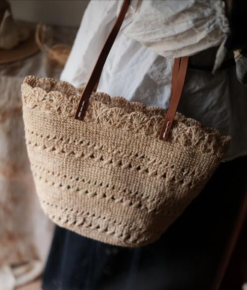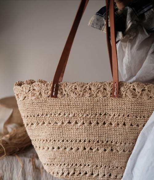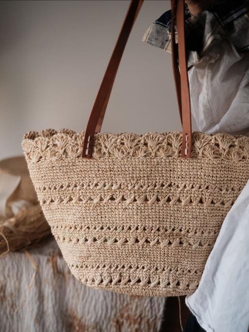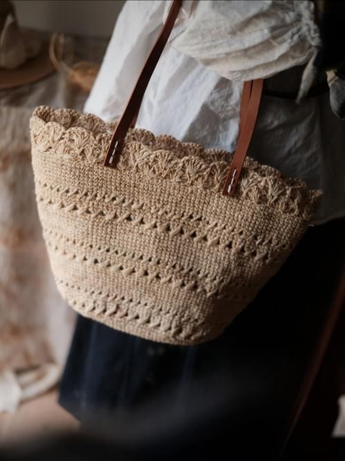 Hand-crocheted floral basket shoulder bag made of natural raffia!
